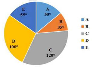 Study the following pie chart where the distribution of five products (A, B, C, D and E) sold by a company in year 2019 is given and answer the following questions.