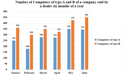 The total number of computers of type A sold in January and May is what percentage less than the total number of computers of type B sold from March to May? (correct to one decimal place)