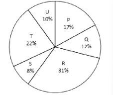 The pie chart below shows the number of girls in 6 schools P,Q,R,S,T and U. The total number of girls in all these six schools are 3000. Number of girls in a particular school is shown as a percentage of total number of girls in all these six schools.