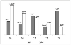 The bar graph given below shows the expenditure of two companies L and M in different years.