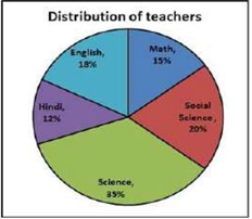 The following pie-chart shows percentage wise distribution of teachers of six different subjects in a school.