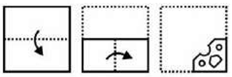 The sequence of folding a piece of paper and the manner in which the folded paper has been cut is shown in the following figures. How would this paper look when unfolded?