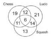 Study the given diagram carefully and answer the questions. The numbers in different sections indicate the number of students who play different games. How many students play only one game?