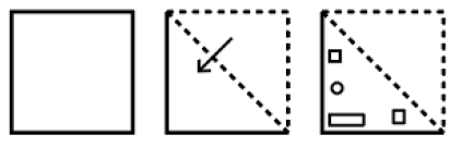 The sequence of folding a piece of paper and the manner in which the folded paper has been cut is shown in the following figures. How would this paper look when unfolded?