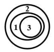 Select the Venn diagram that best illustrates the relationship between the following classes. Doctor, Professor, Cardiologist (1=Doctor, 2=Cardiologist, 3=Professor)