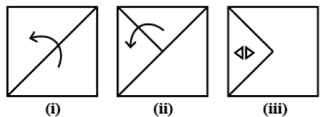 The sequence of folding a piece of paper and the manner in which the folded paper has been cut is shown in the following figures. How would this paper look when unfolded?