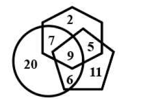 In the following diagram, the 'pentagon' stands for 'athletes', the 'hexagon' stands for 'Indians', and the 'circle' stands for 'medalists'. The numbers given in the different segments represent the number of persons of that category.