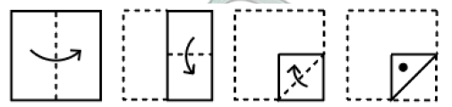 The sequence of folding a piece of paper and the manner in which the folded paper has been cut is shown in the following figures. How would this paper look when unfolded?