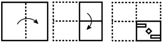 The sequence of folding a piece of paper and the manner in which the folded paper has been cut is shown in the following figures. How would this paper look when unfolded?