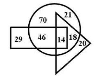 In the following diagram, the rectangle stands for 'yoga teachers', the circle stands for 'Indians', and the triangle stands for 'social workers'. The numbers given in the different segments represent the number of persons of that category.