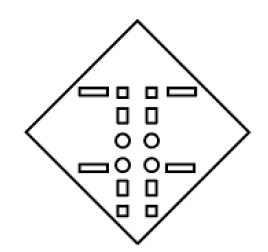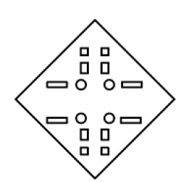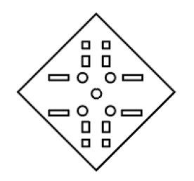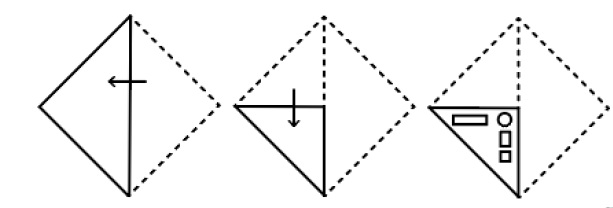 The sequence of folding a piece of paper and the manner in which the folded paper has been cut is shown in the following figures. How would this paper look when unfolded?