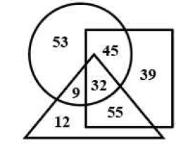 In the following diagram, the triangle stands for 'women', the square stands for 'mothers', and the circle stands for 'dancers'. The numbers given in the different segments represent the number of persons of that category.