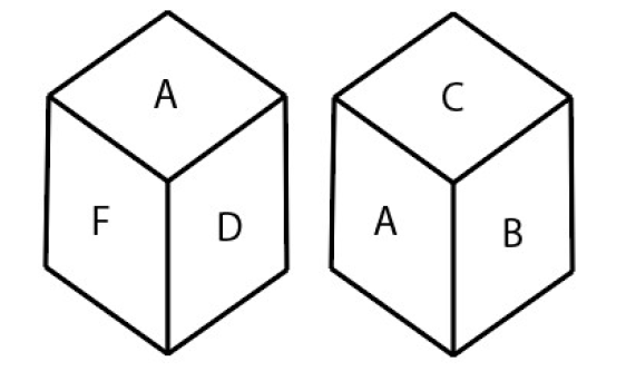 Two different positions of the same dice are shown, the six faces of which are marked with the letters A to F. Select the letter that will be on the face opposite to the one having A.