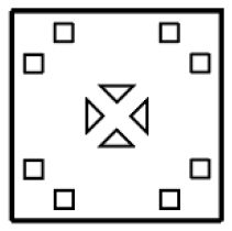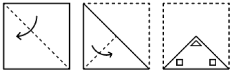 The sequence of folding a piece of paper and the manner in which the folded paper has been cut is shown in the following figures. How would this paper look when unfolded?
