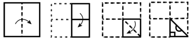 The sequence of folding a piece of paper and the manner in which the folded paper has been cut is shown in the following figures. How would this paper look when unfolded?
