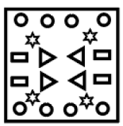 The sequence of folding a piece of paper and the manner in which the folded paper has been cut is shown in the following figures. How would this paper look when unfolded?