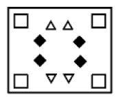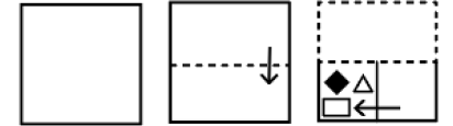 The sequence of folding a piece of paper and the manner in which the folded paper has been cut is shown in the following figures. How would this paper look when unfolded?