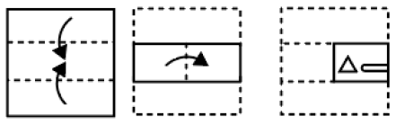 The sequence of folding a piece of paper and the manner in which the folded paper has been cut is shown in the following figures. How would this paper look when unfolded?