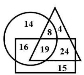 In the following diagram, the circle stands for 'teachers', the rectangle stands for 'part-time workers', and the triangle stands for 'online educators'. The numbers given in the different segments represent the number of persons of that category.