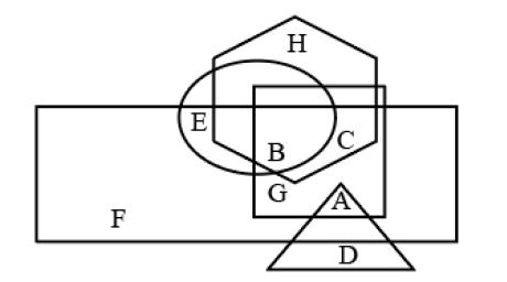 In the following figure, the square represents 'natural satellite', the circle represents 'stars', the rectangle represents 'planets', the hexagon represents 'atmosphere', and the triangle represents 'artificial satellite'. Which letter represents planets but NOT stars which have atmosphere and natural satellite but NOT artificial satellite?