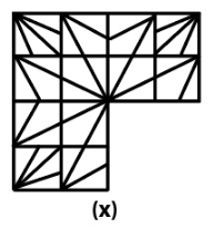 Select the mirror image of the figure marked 'x', when the mirror is placed on the right side of the figure.