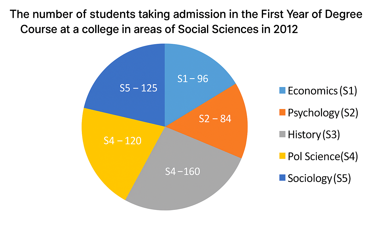 The number of students taking admission in First Year of a Degree Course at a college in areas of Social Sciences in 2012 were as follows: Economics (S1) - 96, Psychology (S2) - 84, History (S3) - 160, Political Science (S4) - 120. Sociology (S9) - 125. The break-up of students in different subjects has been prevented through the given pie chart. Study the pie chart and answer the question that follows.