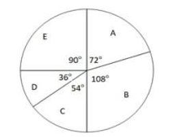 The pie chart shows the distribution (degree-wise) of the number of players who play five sports A, B, C. D, aod E. (assuming each player plays only one sport)