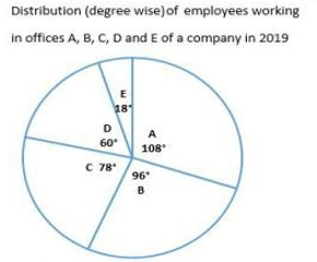 In which office is the number of employees approximately 18% more than the average number of employees working in offices A. C. D and E?