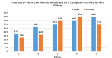 If 45% of the female employees in office C are transferred to office B, then the number of male employees in office E is what percentage more than the female employees in office B?