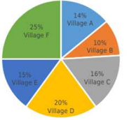 The given chart represents the percentage distribution of the popu1ation of six villages A, B, C, D, E and F in 2016.