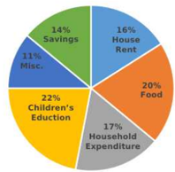 The Gupta family spends their monthly income on different heads as shows in the following chart.