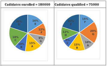 The given pie charts show the number of candidates who enrolled for a medical entrance examination in 2010, and those who qualified 1be examination in seven medical institutes of India.
