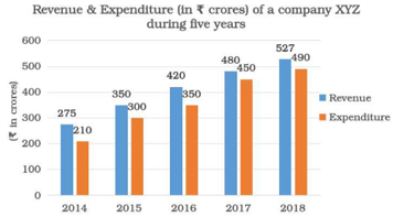 If a pie chart is drawn for the data related to the expenditure of the company in five years, then the central angle of the sector representing expenditure in 2016 will lie between: