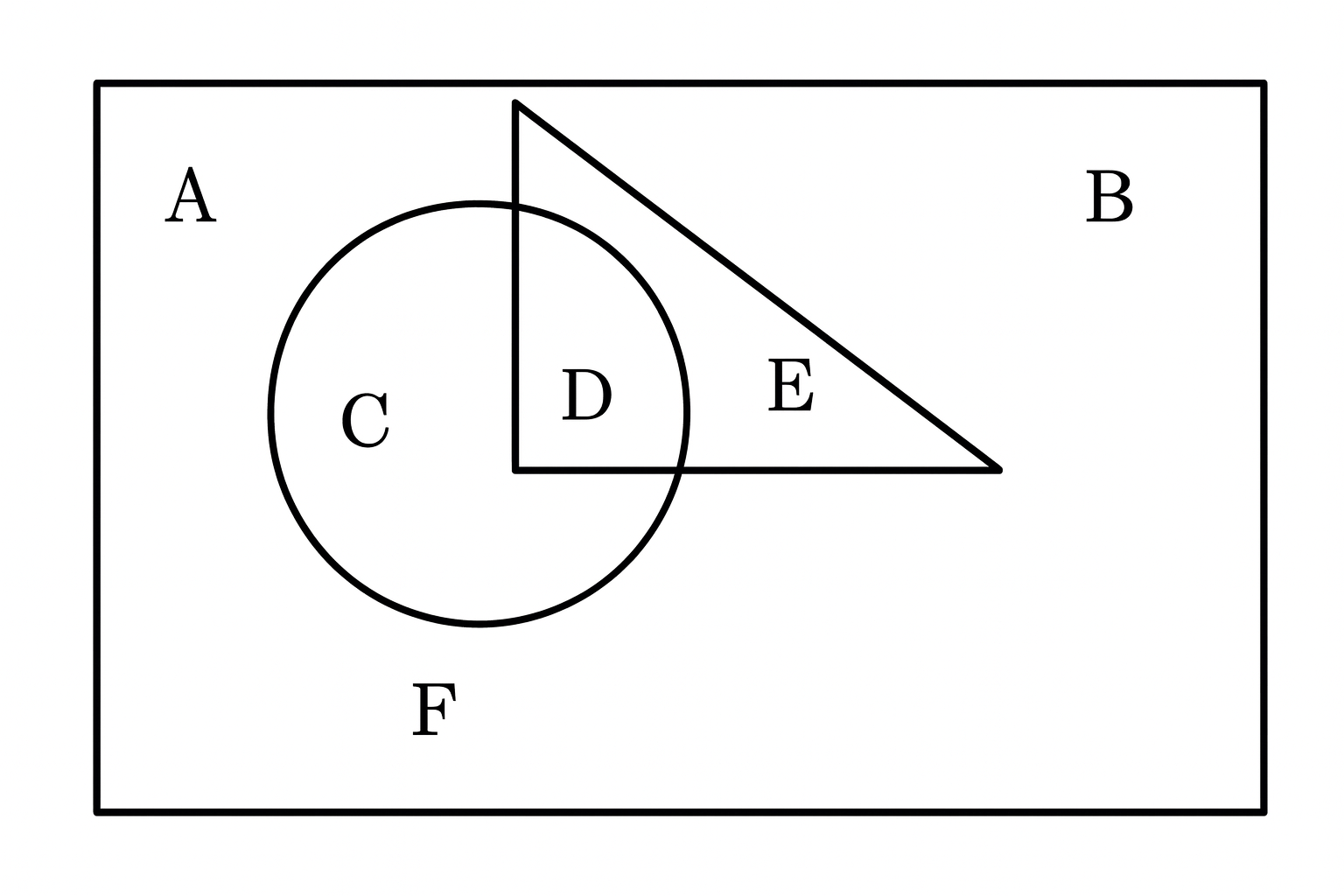 In the given figure, the circle represents kids, the triangle represents girls and the rectangle represents human beings. Which portion represents human beings who are girls but NOT kids?