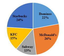A survey was conducted among 3000 people to find the chain of cafes that was most popular. The following pie chart shows the distribution of the percentage of people according to the choice of their favourite cafe.
