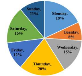 The given pie chart represents the percentage distribution of the number of sandwiches sold by a shopkeeper on different days of a week.