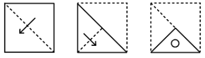 The sequence of folding a piece of paper and the manner in which the folded paper has been cut is shown in the following figures. How would this paper look when unfolded?