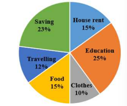 The following pie cha1i shows the expenditure of Ayush on various heads, including Savings, as percentages of his income.