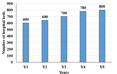 The following bar chart shows the number of hospital beds in a state in 5 consecutive years.
