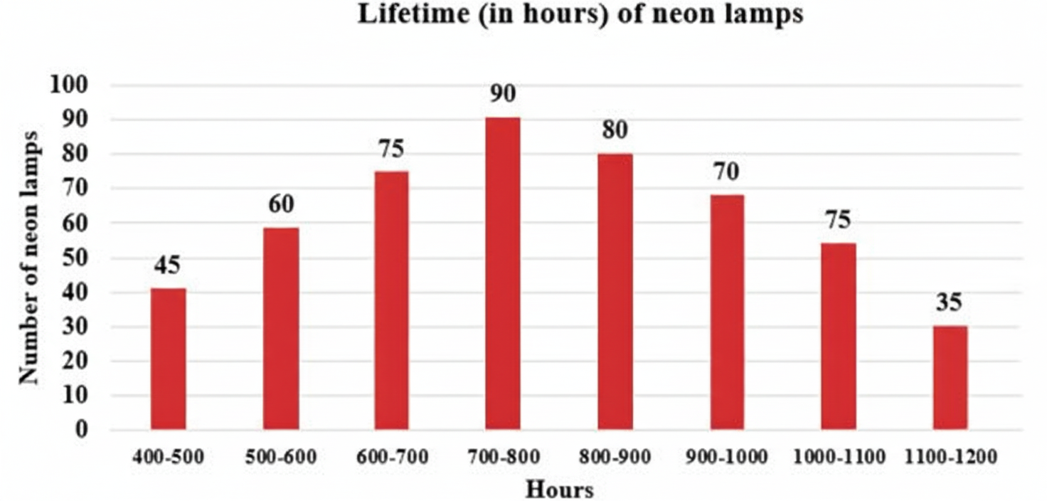 The bar graph given below provides information about the lifetime (in hours) of neon lamps. study the given bar graph and answer the question that follows.