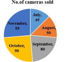 The following pie chart gives the central angles of the sectors representing the number of cameras sold from a shop from July to November in a certain year.