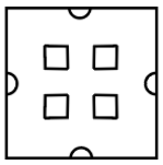 The sequence of folding a piece of paper and the manner in which the folded paper has been cut is shown in the following figures. How would this paper look when unfolded?