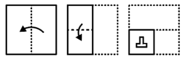 The sequence of folding a piece of paper and the manner in which the folded paper has been cut is shown in the following figures. How would this paper look when unfolded?