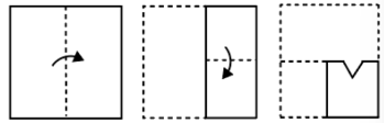 The sequence of folding a piece of paper and the manner in which the folded paper has been cut is shown in the following figures. How would this paper look when unfolded?