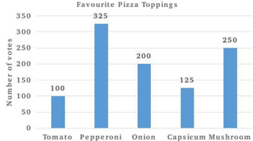 The following bar graph shows the number of votes for favourite pizza toppings.