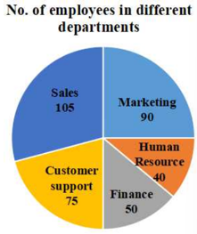 The following pie chart gives the central angles of the various sectors representing the number of employees in different departments in a company.