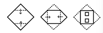 The sequence of folding a piece of paper and the ma1111er in which the folded paper has been cut is shown in the following figures. How would this paper look when unfolded?