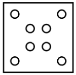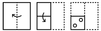 The sequence of folding a piece of paper and the manner in which the folded paper has been cut is shown in the following figures. How would this paper look when unfolded?