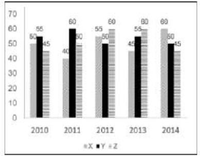 The graph shows the production of tyres (in Lakhs) by three different companies X. Y, and Z over the years