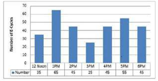 The bar diagram represents the number of E-Cycles parking in a metro station from 12:00 P.M. to 6:00 P.M.